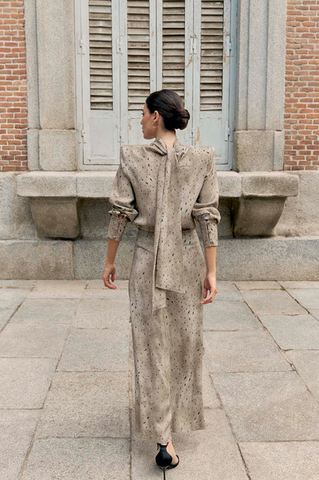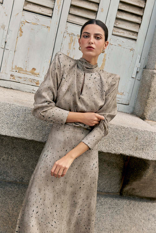 Esta falda larga estampada en viscosa destaca por su comodidad y estilo gracias a su cinturilla ajustada y cremallera trasera. Perfecta para combinar con la camisa Filipa a juego o con una camisa blanca básica, permite crear desde un look elegante hasta uno casual con facilidad.