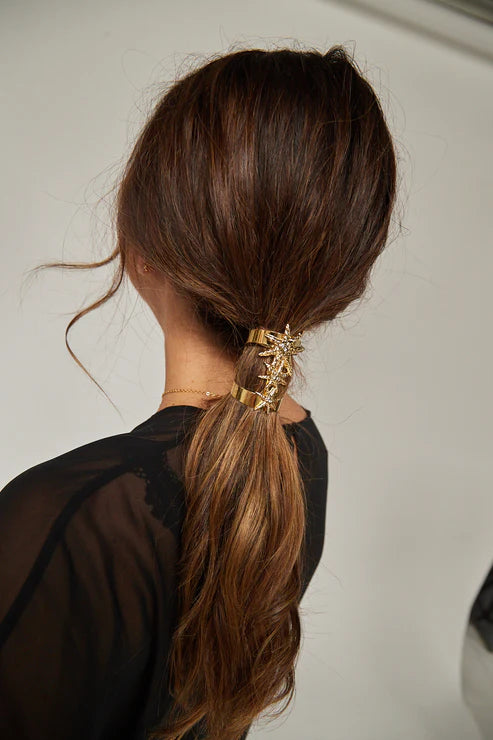 El coletero Estelar para mujer es un elegante diseño de nuestra icónica colección Cosmos, inspirada en el universo y en los astros. Es ideal como complemento, con él puedes adornar tu coleta en ocasiones especiales, como bodas, fiestas o graduaciones. Al ser ajustable y contar con una goma elástica, es extremadamente cómodo y se sujeta perfectamente.